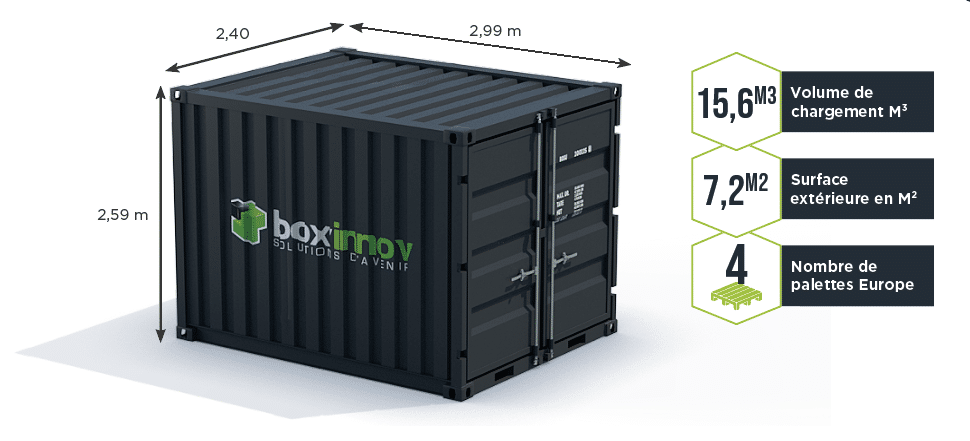 Le prix du container 10 pieds varie par rapport à l’état du conteneur. Le conteneur 10 pieds stockage n’est pas fait pour effectuer de longs voyages, contrairement aux containers maritimes qui sont habilités pour le transport. En effet, il est moins lourd et moins résistant. En revanche, ce container 10 pieds permet de stocker tous types de matériels où vous le souhaitez. Box’innov fait la transformation et l’aménagement de vos conteneurs.